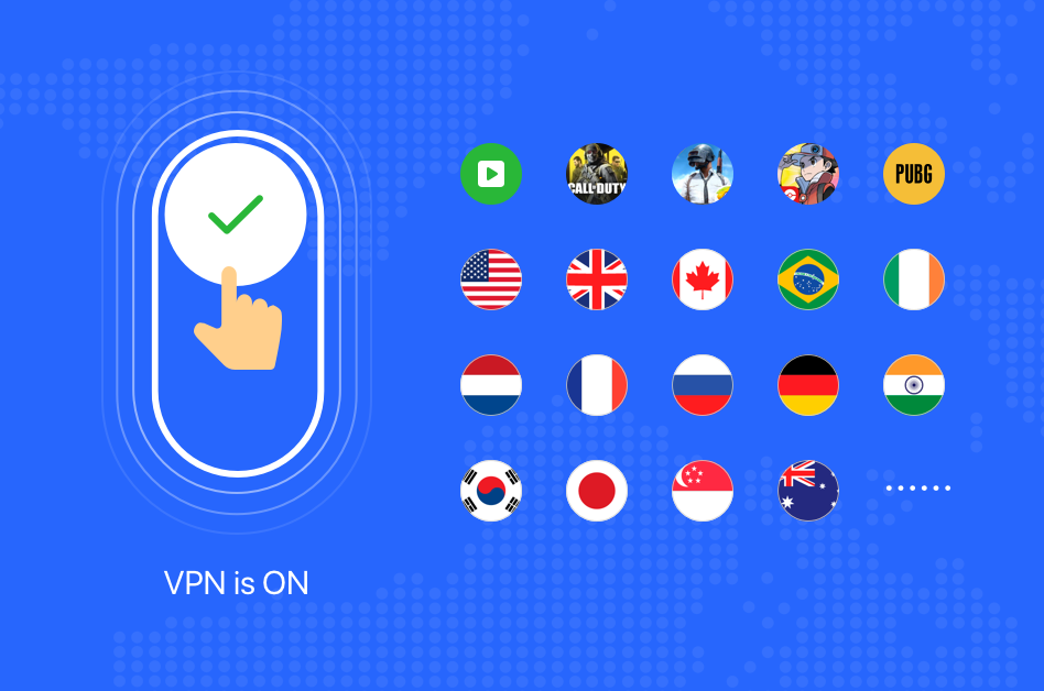 Servers all around the world for you to access all the Internet freely. Netflix US, Netflix JP, BBC iPlayer, PUBGM, CODM,